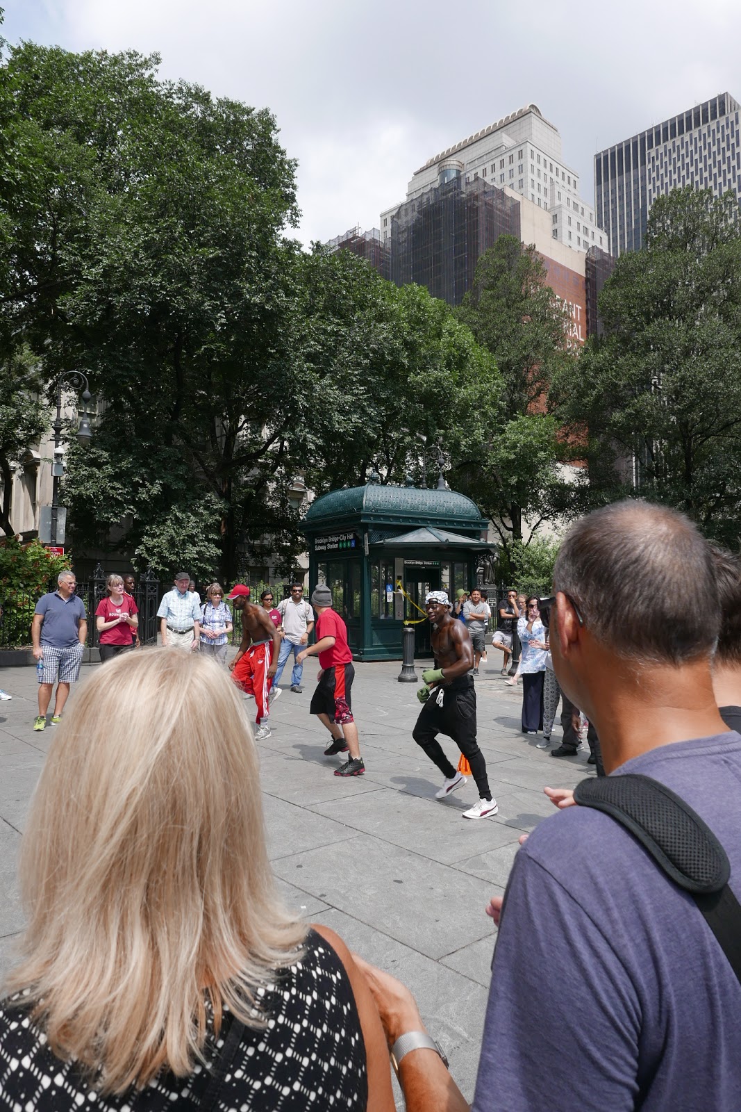 On the other side we saw a large group of people surrounding what was found to be a dance group. Showing off their street dance. I was filming when they asked for volunteers. One of the guys yelled : "Yo! White guy!" in my direction. I looked around and realized I was the only white guy around. "Yo! White guy with the camera! Raise you hand!". I did. "We have a volunteer!" he screamed. I laughed, and stepped into the ring. And became one of four "volunteers" for a stunt that one of the others would perform. After som initial prepping of the crowd, and the usual "we need ur moneeeee!", the four of us were told to bend our backs, and one guy did a flying somersault above our backs. To great cheer of the crowd. My 15 seconds of fame. If only as a prop...