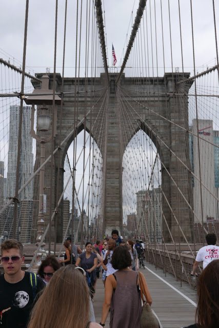 After consuming untold amounts of calories, we needed some exercise. A short trip on the metro, we arrived in Brooklyn, to start a walk across East River on the famous Brooklyn Bridge. When we emerged from the subway, we came up into a produce market. The fresh scent of fruits and produce lured us into shopping some snacks for the day.A monument to the engineering of its days. Since the sun was coming out, a lot of other people had found they wanted to do the same, making the bridge crossing seem like a rush-hour traffic. But the walk is good and the bridge is pictoresque. And it has a great view of Manhattan.