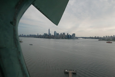 After waking up almost as early as the day before, we headed out into the streets to go down to Battery park for the ride to Lady Liberty, the Statue of Liberty on Liberty Island. I had aquired tickets for access to the crown. I had to book 3 months in advance to get those. I had bought tickets for the early bird ferry. But even then, the line was as long as a bad year when we arrived. We had some initial problems with the subway, not realizing that the lines were different during weekends. But we arrived in time. I have learned from experience never to expect everything to work out perfectly, so I had as usual added a lot of time to make mistakes.All of us where guided through ticket control and security checks before we were allowed on the "Lady Liberty" boat. It was full, but not jam-packed. The fresh breeze was a welcomed. I love the sea breeze. The Lady was zooming in as we crossed the short distance. She is a beauty.